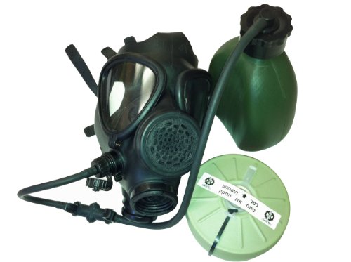 The original gas mask issued to the Israeli Defense Force. It has full NBC (neuclear, biological, chemical) protection, and comes with one sealed filter. Mask is new, unissued cond. and has hydration port, original drinking straw and a brand new canteen. Also good to have around for protection against smoke, paint spray, grinding dust, etc.